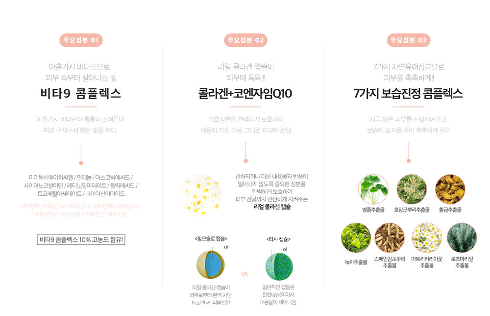 복숭아빛의 묽은 제형이 피부 본연의 자연스러운 빛을 찾아줍니다.